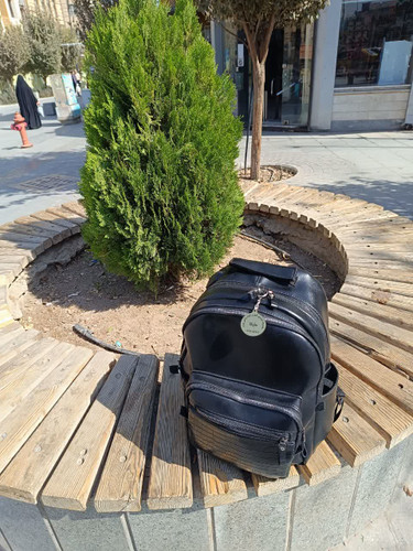 کوله پشتی برزنتی مشکی شمعی ضد آب | سرزیپ چرم طبیعی و بند پددار